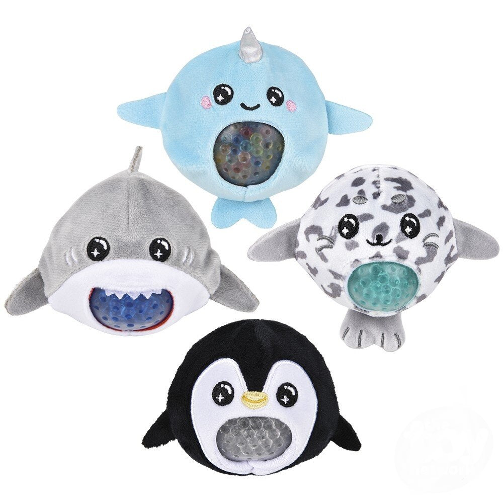 Our 3" Sealife Squeezy Bead Plush Balls have a soft plush outside with a bead-filled inside that is super satisfying to squish and squeeze.